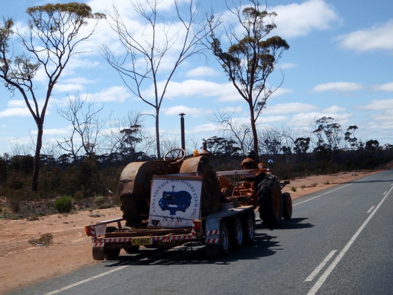 We have been across the Nullarbor a few times, already usually in a hurry, so this time we thought we would slow down and check out the scenery.Our first stop was Newman rock pool just for a coffee but would make a great overnight stop.Then off on our way again we came across a man on an old tractor towing an old tractor I think it was a Chamberlain it always astounds me the people that you see traveling some seem to do it so hard (on push bikes walking etc).The next night was a beautiful bush camp with plenty of bird life the budgies were plentiful nesting in every available tree hole they were really cute to watch.Back on the road again and on to the Australian Bight magnificent we camped here for the night with champagne in hand and watched the sun set really beautiful.While we were having breakfast in the morning the old tractor past us boy he makes really good time also about 25 motor bikes not to sure of there story. The next stop was a road side camp not to great a bit noisy so we are of again heading towards Ceduna.